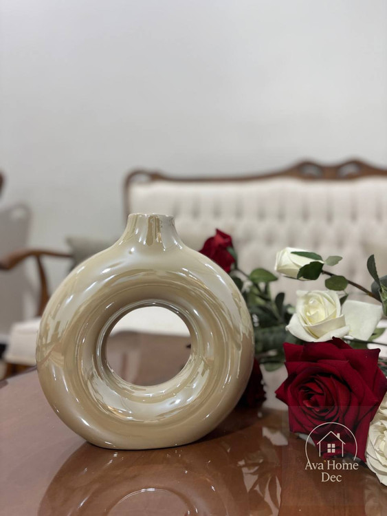 گلدان دوناتی سرامیکی لاستر آواهوم دک همان قطعهای است که به دکور خانهتان عمق، توازن و درخشش میدهد.